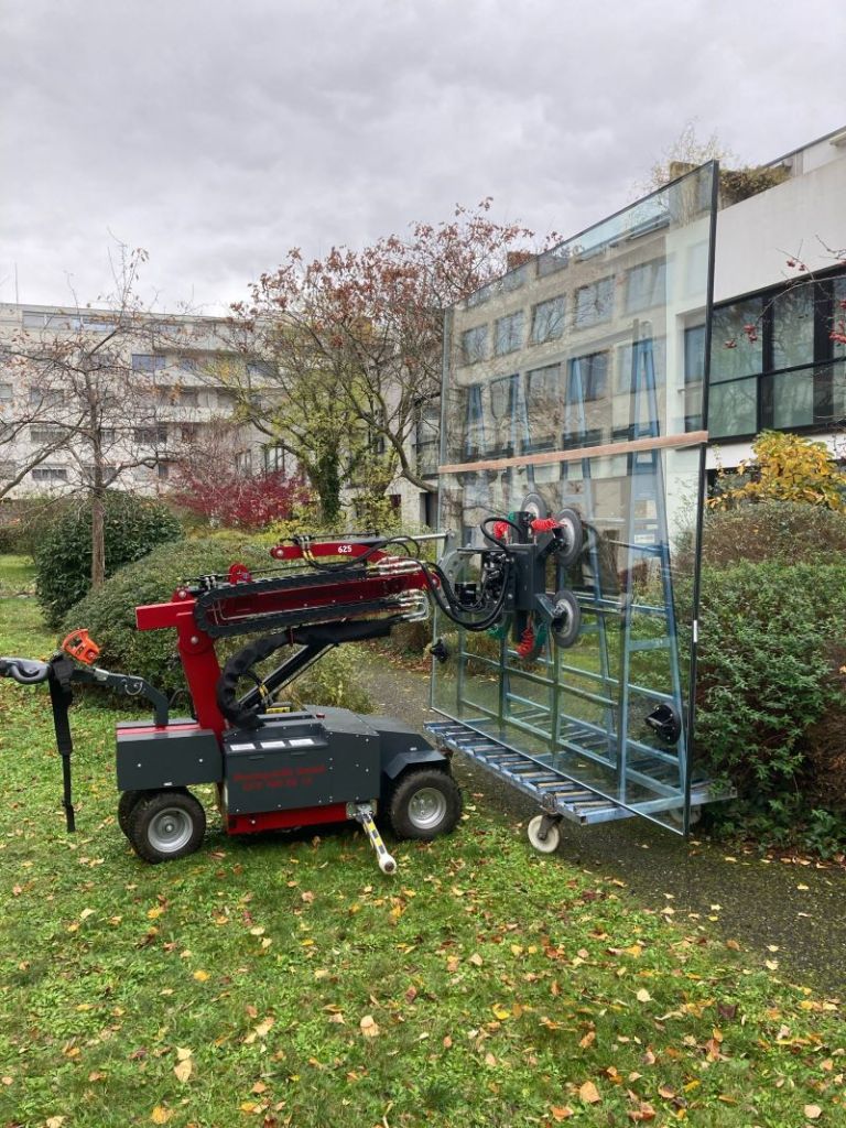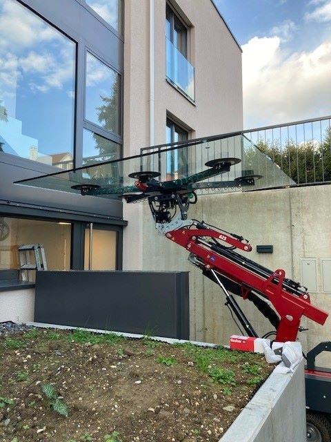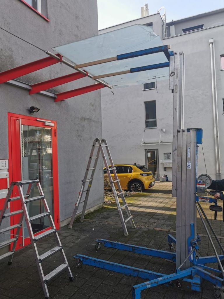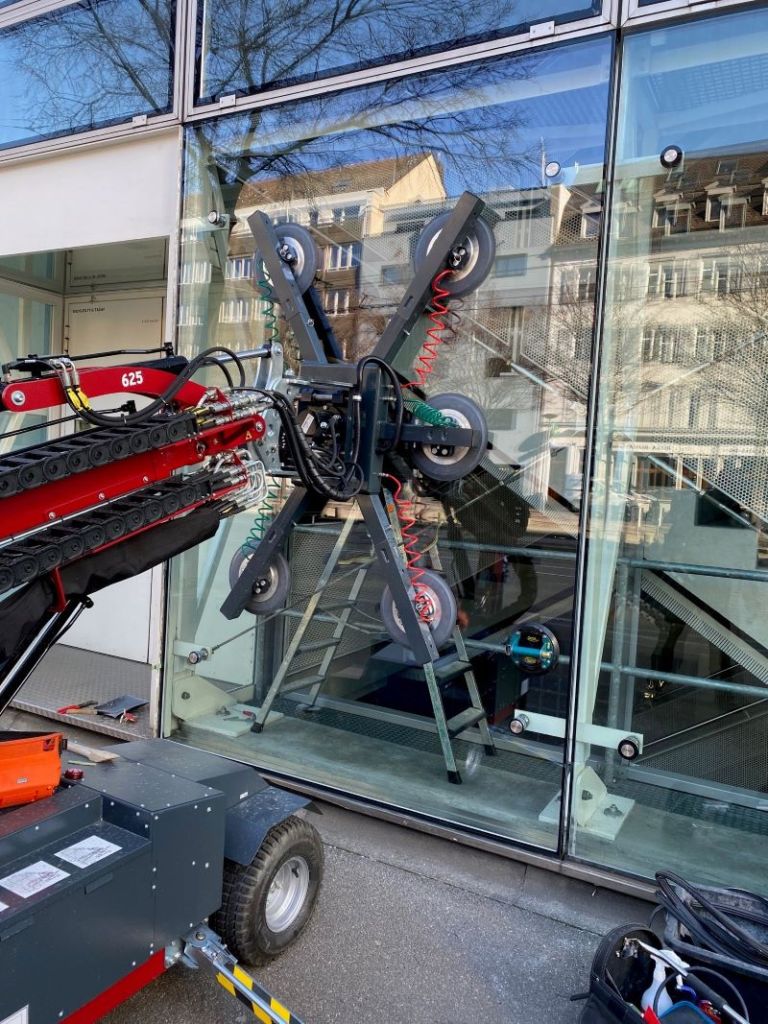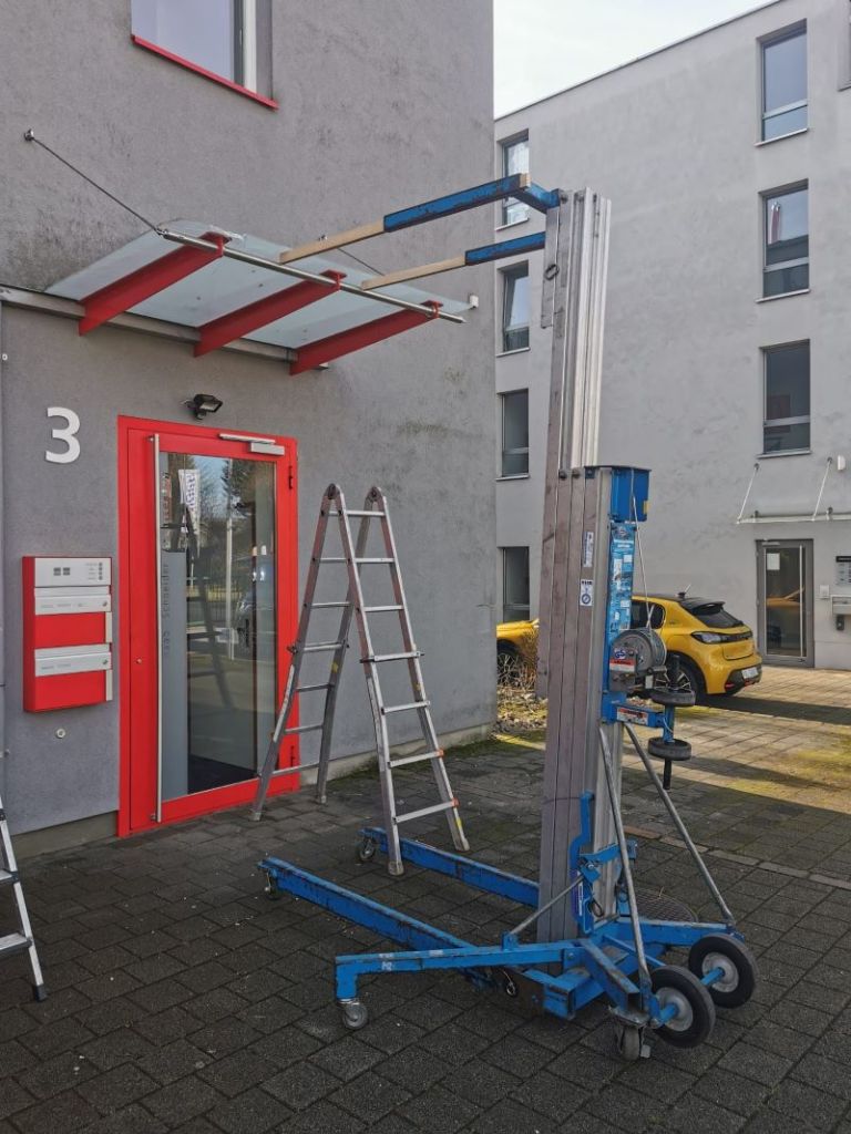 Galerie Montagelift Der Montagelift kann bis zu einer Höhe von 6,5 Metern ausgefahren werden. Sauganlage Glasmontagen Reparaturen Reinigung Glasdach Sonstiges